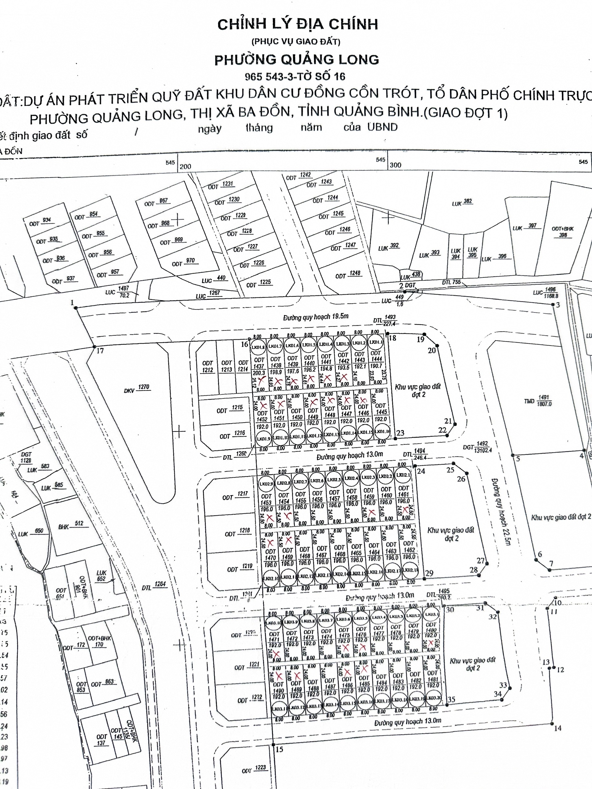 Thông báo đấu giá quyền sử dụng đất đối với 26 thửa đất ở thuộc Dự án: Phát triển quỹ đất Khu dân cư Đồng Cồn Trót, tổ dân phố Chính Trực, phường Quảng Long, thị xã Ba Đồn, tỉnh Quảng Bình (Đợt 1). Địa điểm: TDP Chính Trực, phường Ba Đồn, tỉnh Quảng Trị.