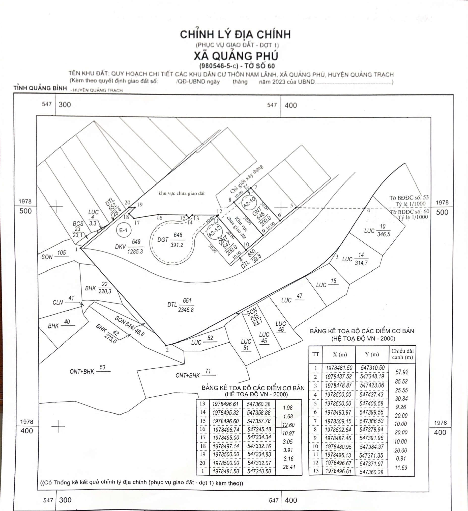 Thông báo đấu giá quyền sử dụng đất đối với 50 thửa đất ở tại dự án Hạ tầng kỹ thuật khu quy hoạch khu dân cư thôn Nam Lãnh, xã Quảng Phú, huyện Quảng Trạch, tỉnh Quảng Bình