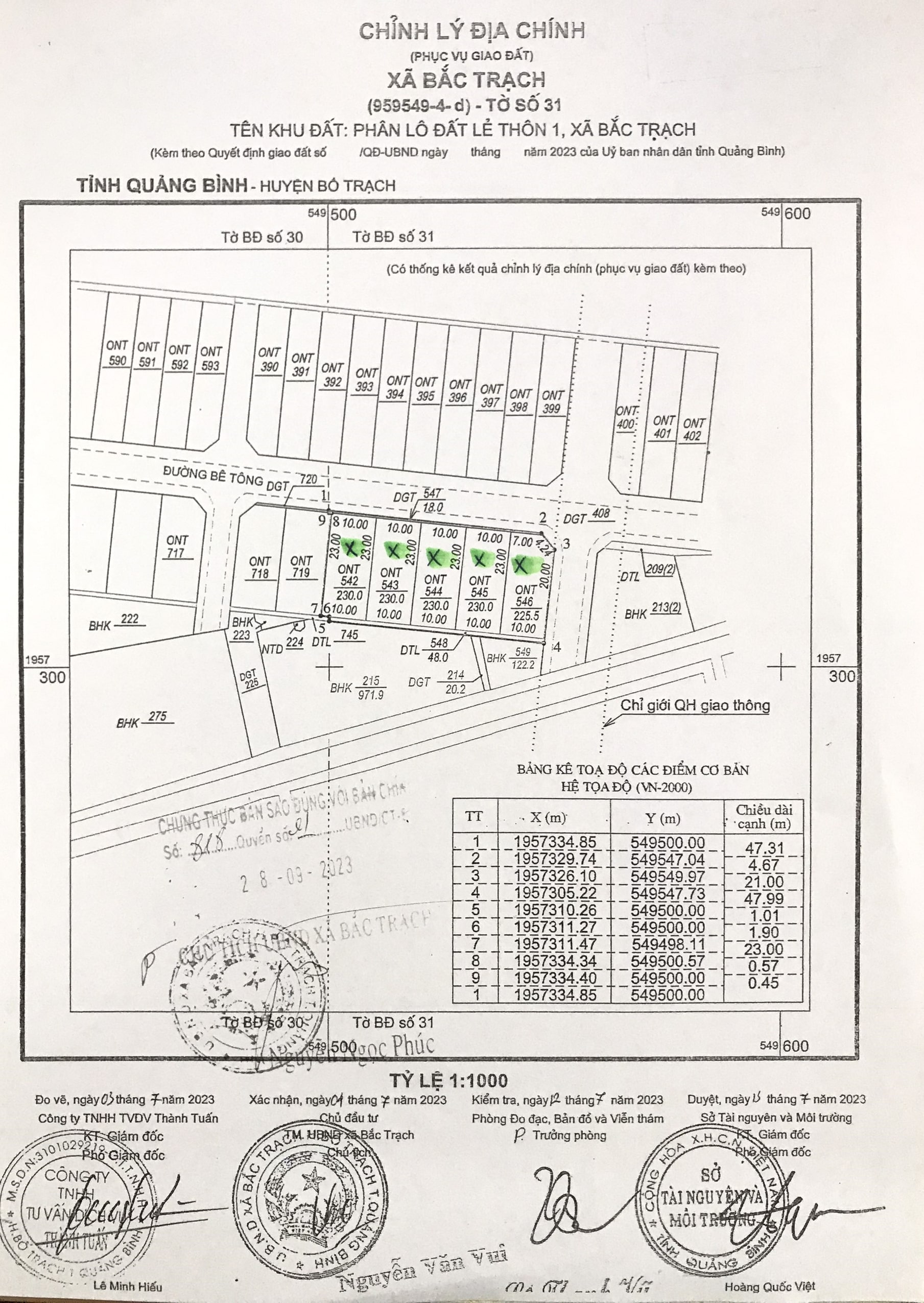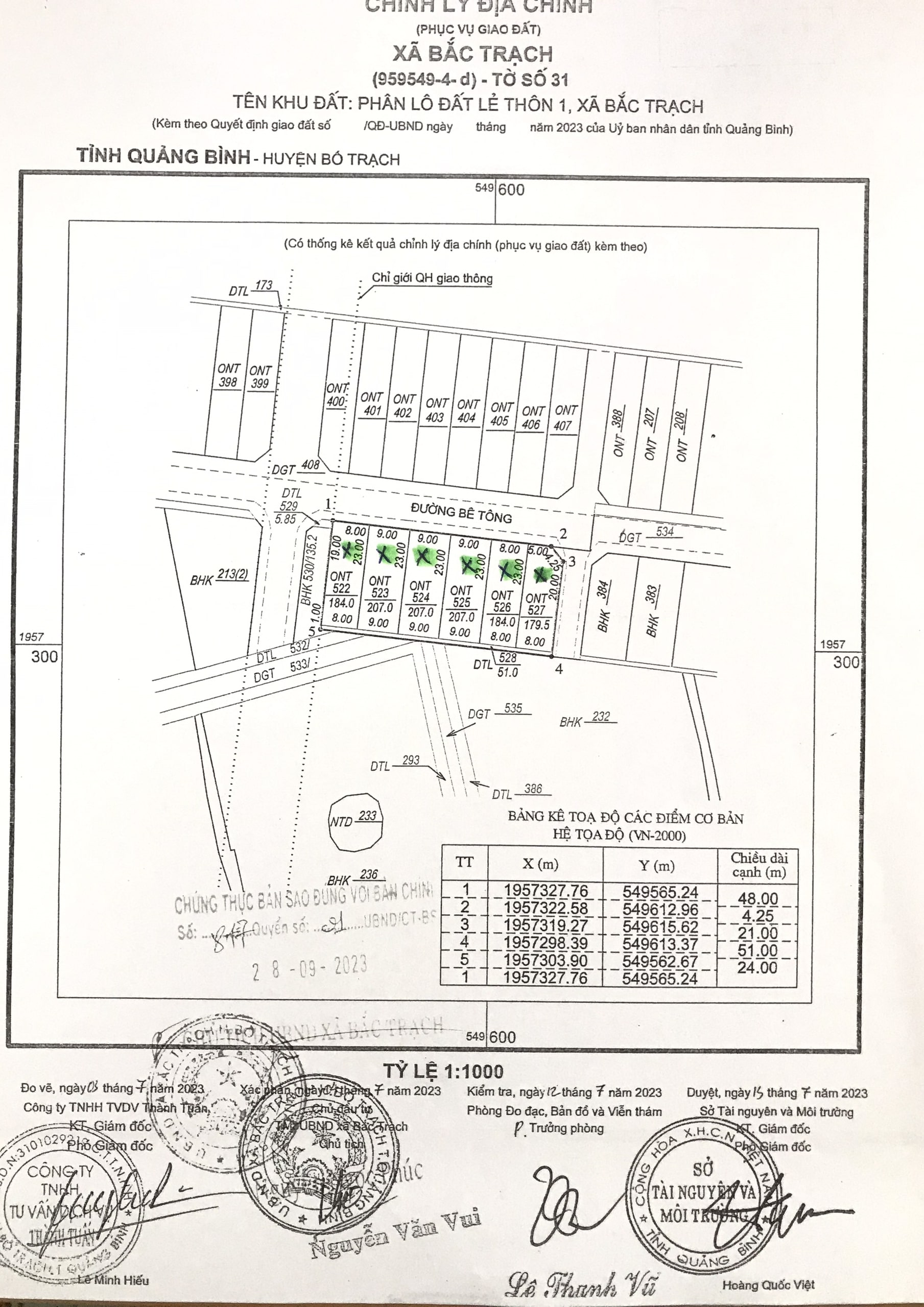 2. Tổ chức có quyền đưa tài sản ra đấu giá: Ban quản lý dự án Đầu tư xây dựng và Phát triển quỹ đất huyện Bố Trạch. Địa chỉ: Đường Nguyễn Tất Thành, tiểu khu 3, thị trấn Hoàn Lão, huyện Bố Trạch, tỉnh Quảng Bình. 3. Tài sản đấu giá: Quyền sử dụng đất ở đối với 19 thửa đất tại xã Bắc Trạch, huyện Bố Trạch, tỉnh Quảng Bình; Diện tích từ 179,5m2/thửa đến 230,0m2/thửa; Giá khởi điểm từ 460.000.000 đồng/thửa đến 677.000.000 đồng/thửa. Diện tích đất, vị trí, giá khởi điểm của từng thửa đất và các thông tin liên quan được niêm yết tại trụ sở Trung tâm Dịch vụ đấu giá tài sản tỉnh Quảng Bình, Ban quản lý dự án Đầu tư xây dựng và Phát triển quỹ đất huyện Bố Trạch và UBND xã Bắc Trạch. 4. Tiền đặt trước: Nộp 20% trên giá khởi điểm của thửa đất đăng ký. 5. Điều kiện, cách thức đăng ký tham gia đấu giá tài sản: Hộ gia đình, cá nhân thuộc đối tượng được Nhà nước giao đất có thu tiền sử dụng đất theo quy định của Luật Đất đai, nộp hồ sơ tham gia đấu giá hợp lệ tại trụ sở của Ban quản lý dự án Đầu tư xây dựng và Phát triển quỹ đất huyện Bố Trạch. 6. Thời gian, địa điểm thực hiện các thủ tục đấu giá tài sản: - Thời gian tham khảo, bán hồ sơ, tiếp nhận hồ sơ đăng ký tham gia đấu giá và bỏ phiếu trả giá: Từ ngày 18/10/2023 đến 16h30/ ngày 03/11/2023. - Địa điểm tham khảo, bán hồ sơ tham gia đấu giá: Tại trụ sở Ban quản lý dự án Đầu tư xây dựng và Phát triển quỹ đất huyện Bố Trạch và trụ sở Trung tâm Dịch vụ đấu giá tài sản tỉnh Quảng Bình. - Địa điểm tiếp nhận hồ sơ đăng ký tham gia đấu giá và bỏ phiếu trả giá: Tại trụ sở Ban quản lý dự án Đầu tư xây dựng và Phát triển quỹ đất huyện Bố Trạch. - Thời gian, địa điểm nộp tiền đặt trước: Từ ngày 01/11/2023 đến 16h30’ ngày 03/11/2023 vào tài khoản của Trung tâm Dịch vụ đấu giá tài sản tỉnh Quảng Bình mở tại Ngân hàng thương mại. (Các thủ tục trên được thực hiện trong giờ hành chính các ngày làm việc) - Thời gian, địa điểm buổi công bố kết quả trả giá: Vào lúc 14h00’ ngày 06/11/2023 tại UBND xã Bắc Trạch, huyện Bố Trạch, tỉnh Quảng Bình. Mọi chi tiết xin liên hệ: Tại Trung tâm Dịch vụ đấu giá tài sản, điện thoại: 0232.3856585 (Gặp đ/c Phương); Ban quản lý dự án Đầu tư xây dựng và Phát triển quỹ đất huyện Bố Trạch và UBND xã Bắc Trạch./. ĐỊNH VỊ 19 THỬA ĐẤT: Xem tại đây PHỤ LỤC 19 THỬA ĐẤT